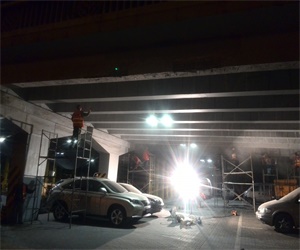 景泰橋位于南二環(huán),建于1992年。此次大修對(duì)橋下梁、墩柱、蓋梁處裂縫進(jìn)行灌漿處理,并對(duì)結(jié)構(gòu)進(jìn)行加固,以提高整體性和承載能力。裂縫寬度在0.15mm~0.3mm之間,采用筑致杰®自動(dòng)低壓灌漿技術(shù)灌漿修復(fù),在不破壞原結(jié)構(gòu)的前提下將裂縫灌注飽滿(mǎn),確?;炷恋恼w性和使用要求。對(duì)修補(bǔ)后的橋梁采用筑致杰®Z8混凝土保護(hù)劑進(jìn)行整體保護(hù),延長(zhǎng)橋梁的使用年限。