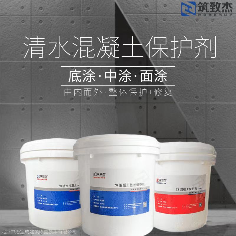 一、清水混凝土修復(fù)及透明保體系介紹 1、保護(hù)材料:筑致杰清水混凝土保護(hù)體系 筑致杰清水...