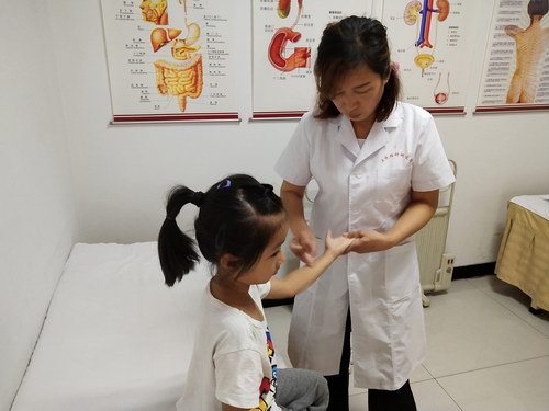 左冬青主任正在采用五絕指針療法治療小兒脾胃虛弱